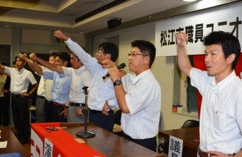 参議院選挙について、全国的な民主党への批判と、政権交代後のアベノミクスが評価される強烈な逆風のなか行われた。結果、民主党は大幅に議席を減し、結党以来最少となる大惨敗を喫した。しかし、自治労組織内の「あいはらくみこ」は全国比例区の獲得議席数が7議席にとどまるなか、第3位で再選を勝ち取ることができた。また、島根選挙区においては自民党の強固な地盤を突き崩すには至らず「亀井あきこ」は島根県で唯一の貴重な非自民の議席を失った。しかし、圧倒的な自民党有利の環境のなか11万票を超える得票があったことは、自民党政権に懸念を抱く有権権者が決して少なくないという表れである。県民の皆さんに対し反自民の選択肢を明確に打ち出し、参議院選挙をたたかってきた市職の取り組みは間違っていなかったと確信している。短期間での取り組みであったが組合員の昼夜を問わぬ取り組みに心から感謝を申し上げる。